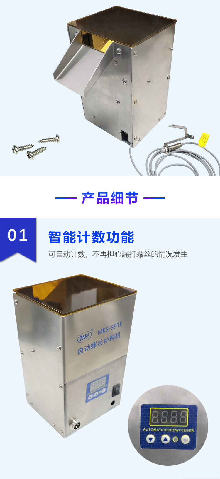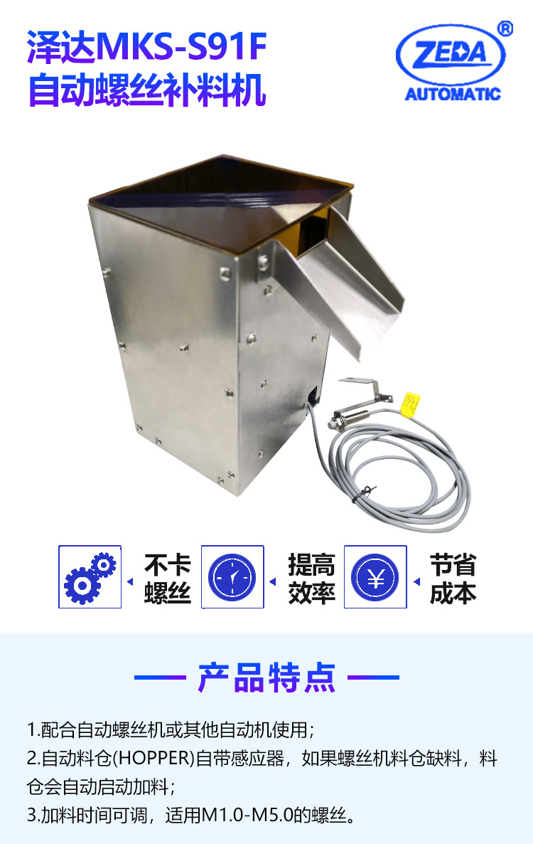 3、加料時(shí)間可調(diào),適用M1.0-M5.0的螺絲;