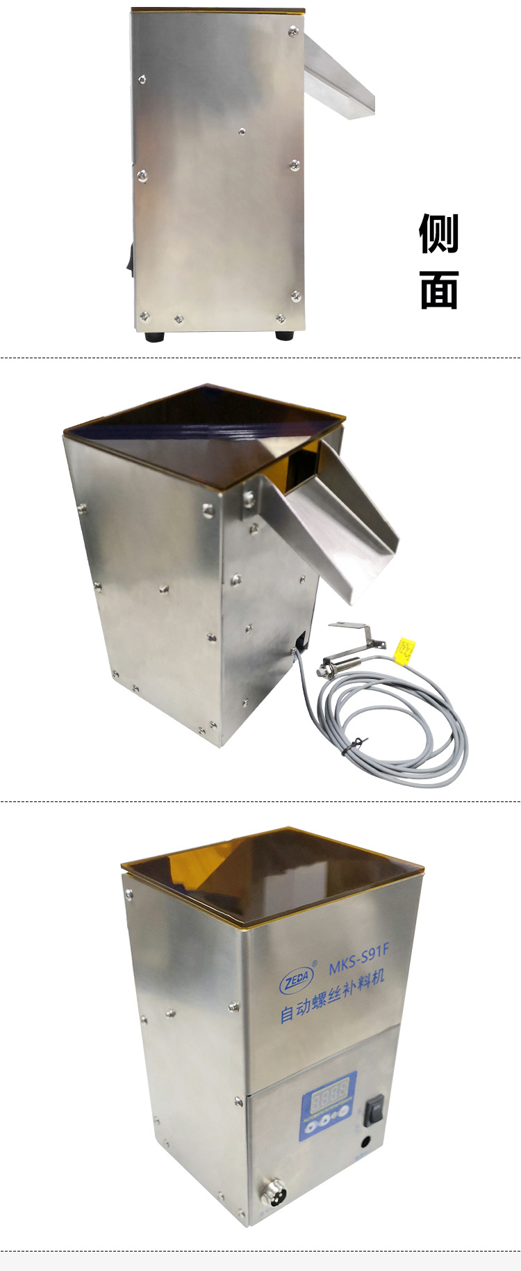 2、自動(dòng)料倉(cāng)(HOPPER)自帶感應(yīng)器,如果螺絲機(jī)料倉(cāng)缺料,自動(dòng)料倉(cāng)會(huì)自動(dòng)啟動(dòng)加料;