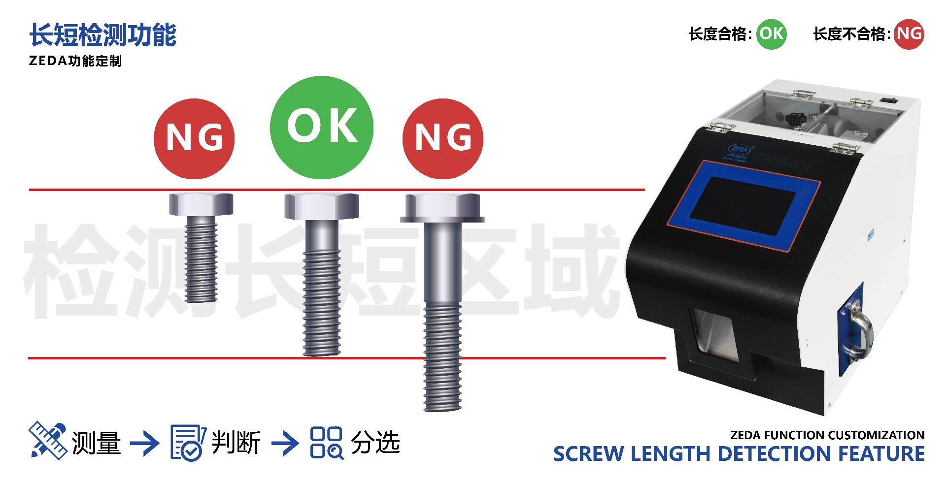 影響最終鎖附品質的關鍵變量。為此,集成于供料環(huán)節(jié)的長短檢測(Length Detection)功能——在行業(yè)中亦稱為尺寸篩選(Size Screening)良品篩選(OK/NG Sorting)——已成為保障良率不可或缺的“智能守門員”,尤其針對危害最大的短料檢測(Short Screw Detection)需求。